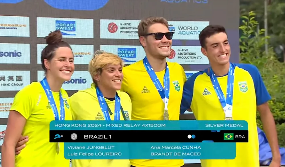Participar da Copa do Mundo de Águas Abertas da World Aquatics já é, por si só, um sonho realizado para qualquer nadador de elite. Agora, conquistar uma medalha de prata representando o Brasil no revezamento misto 4x1500m na etapa de Hong Kong é algo que vai ficar marcado para sempre na minha memória, na minha carreira e no coração de quem me acompanha.